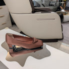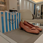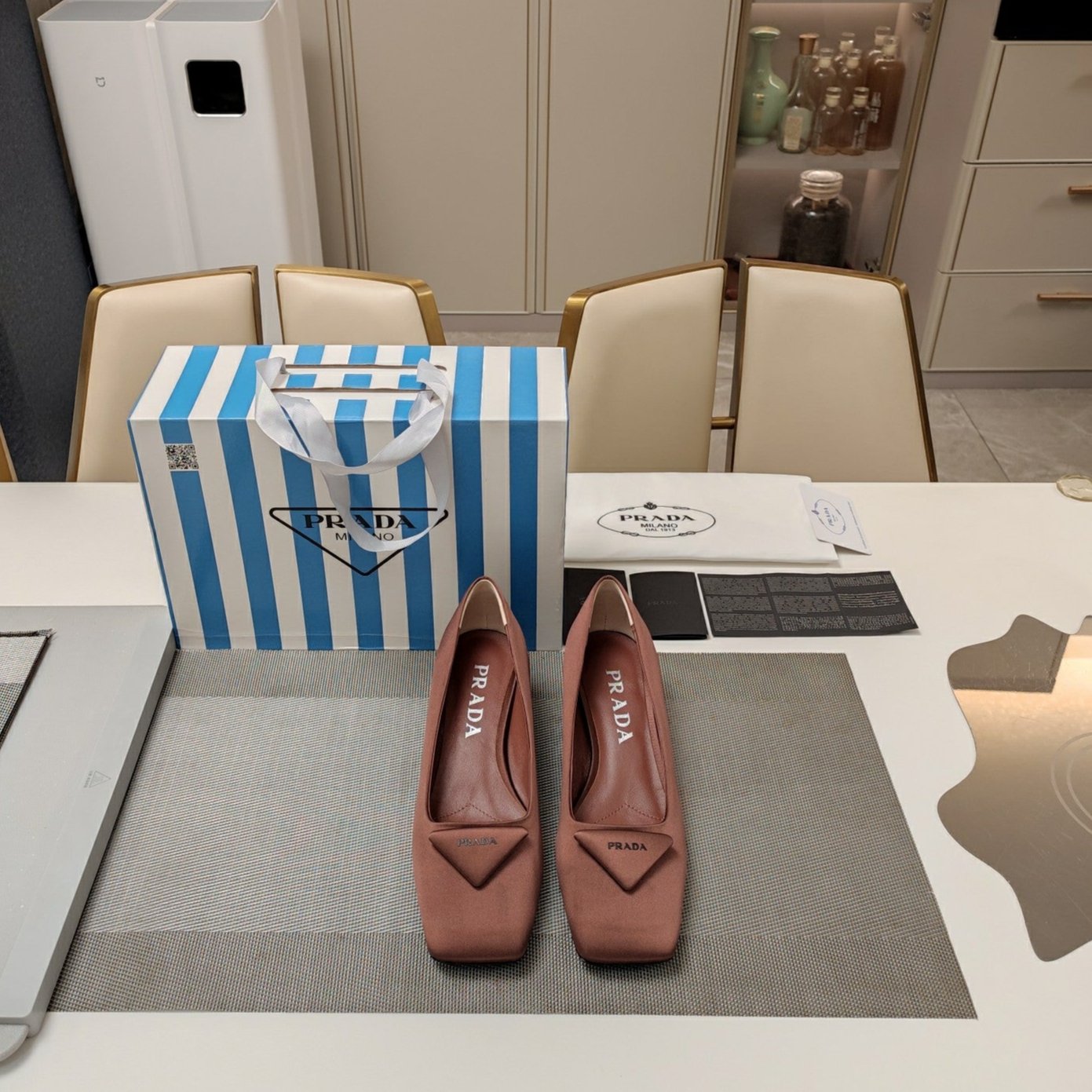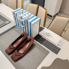 TRIANGLE LOGO PUMPS IN CHESTNUT BROWN SATIN
