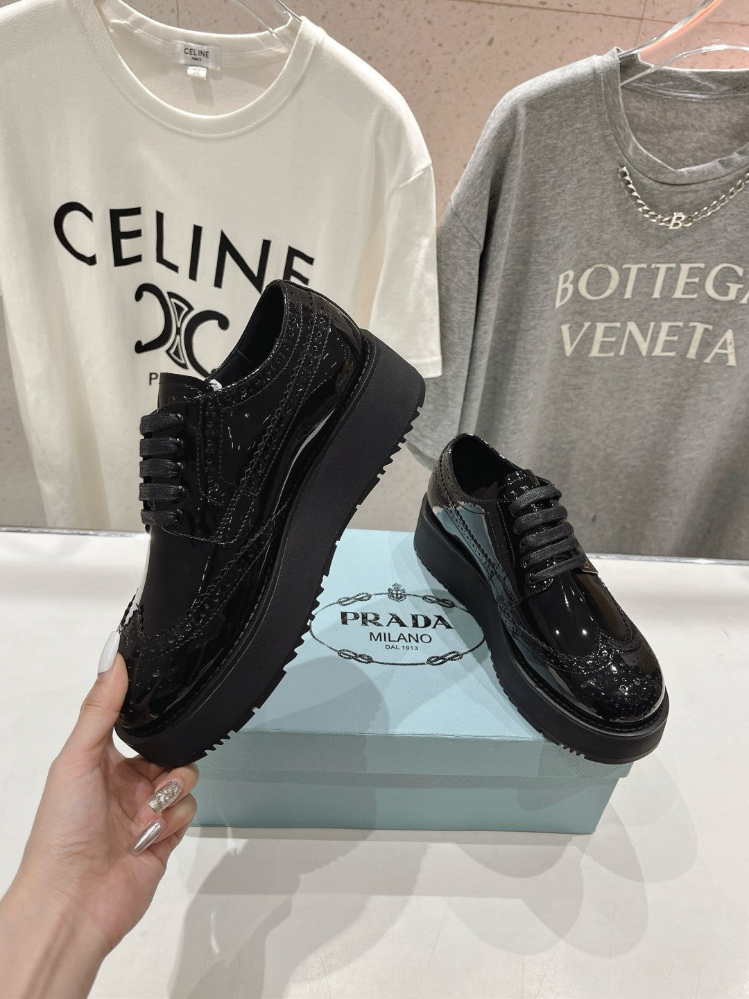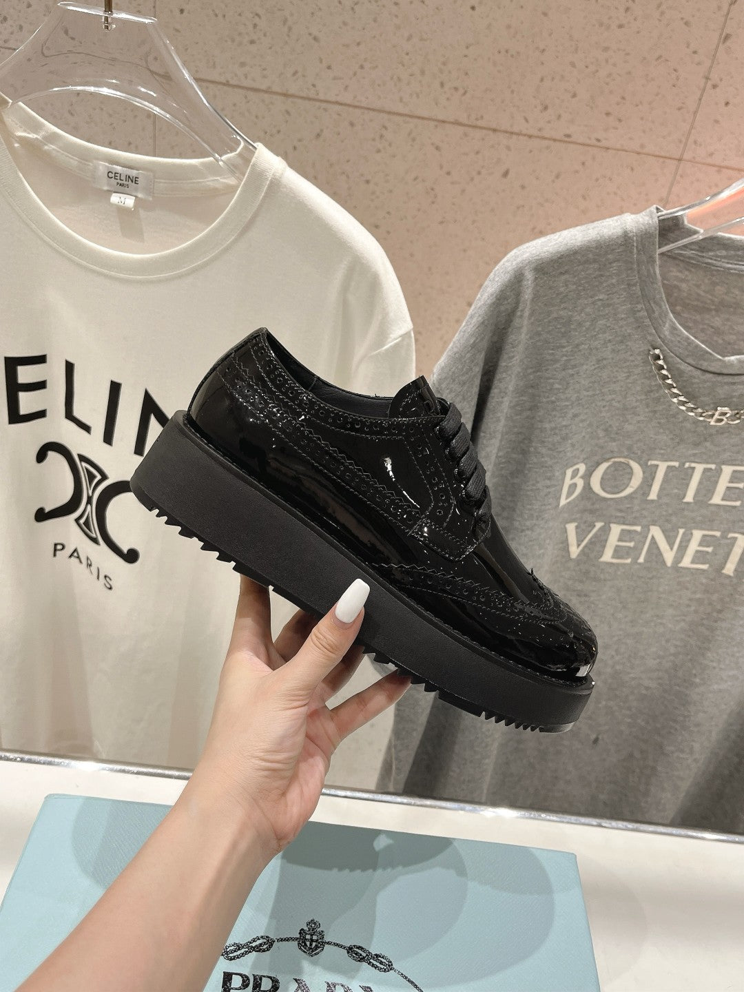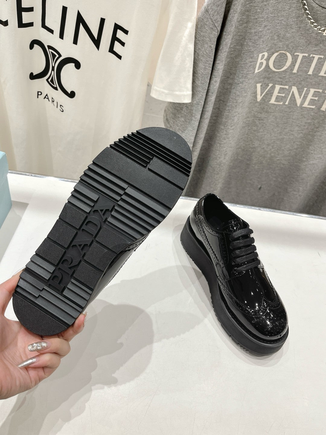 PRA BRUSHED LEATHER DERBY SHOES GLOSSY BLACK