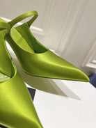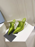 PRA HIGH-HEELED MULES PEAR SATIN