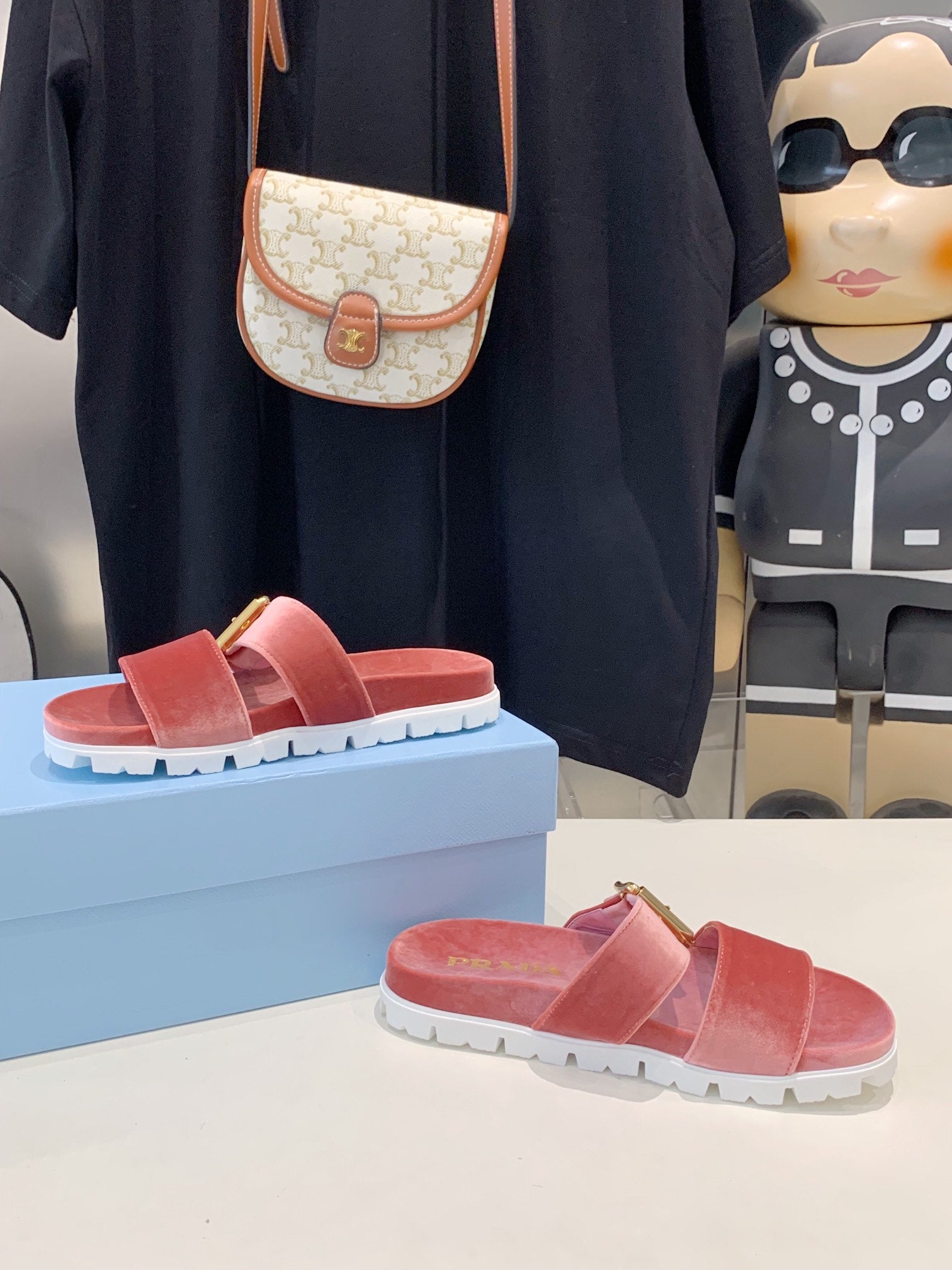 PRA SLIDES SANDALS DARK PINK VELVET