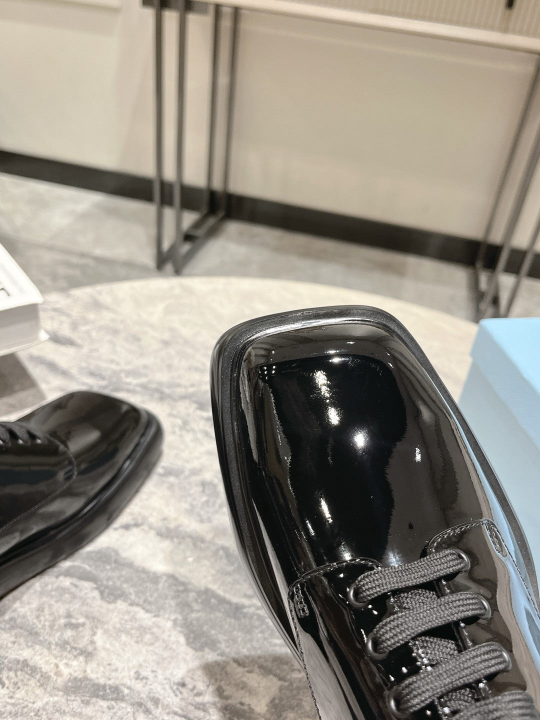 PRA SQUARE HEAD LACE-UP LOAFERS GLOSSY BLACK CALFSKIN