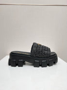 PRA THICK-SOLED CROCHET SANDALS BLACK WOVEN FABRIC