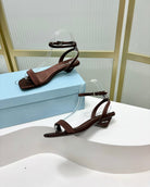 PRA TRIANGLE HEEL SATIN SANDALS BROWN