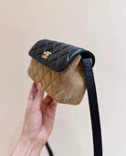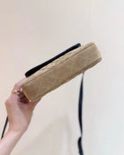 Chanel 2025 Block Flap Bag 20cm Black Beige Lambskin Suede 343043