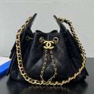 Chanel 2025 Hobo Bag 22cm Black Gold Grained Calfskin