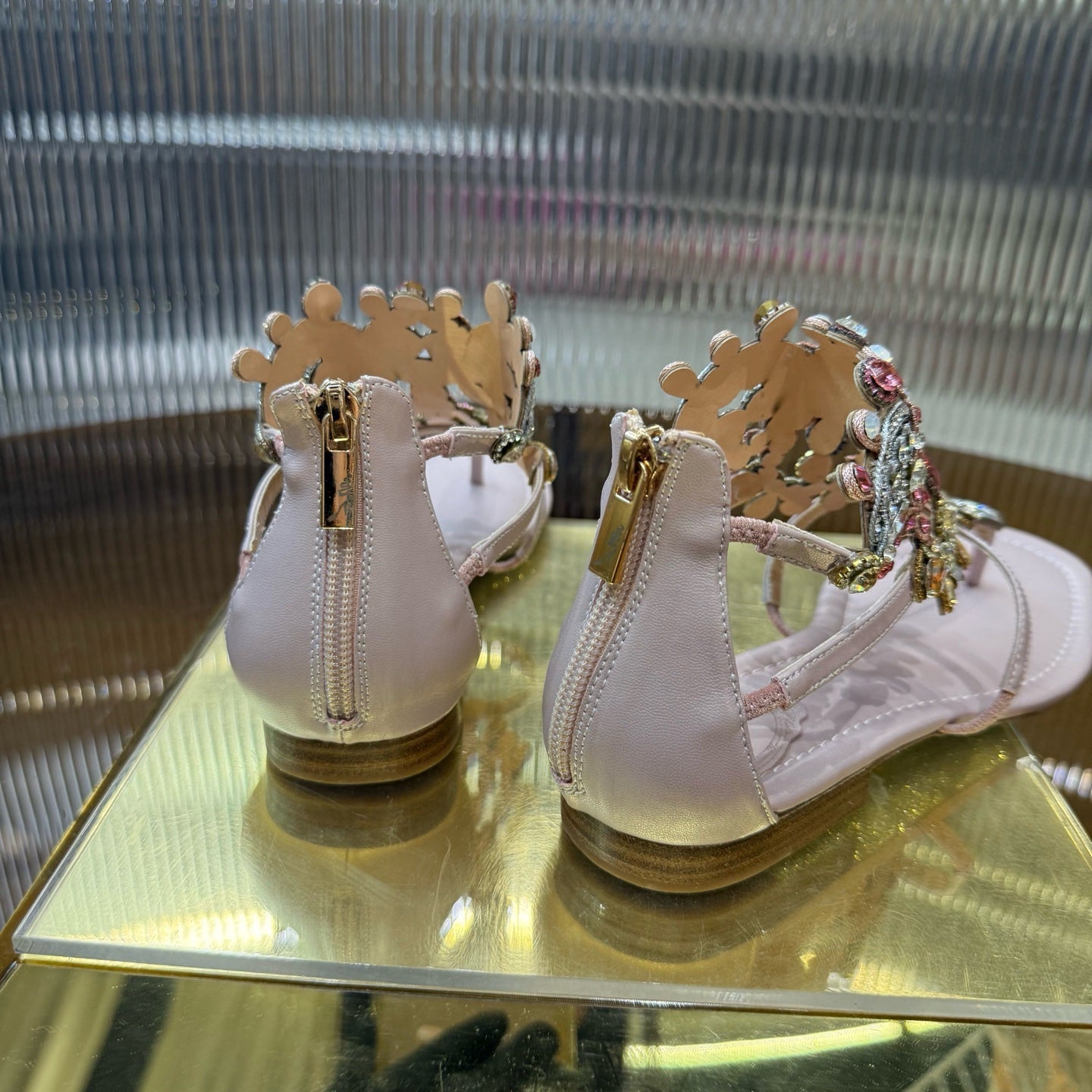 RC 25C Thong Diamond Sandals Pink Gold Sheepskin Rhinestone 339505