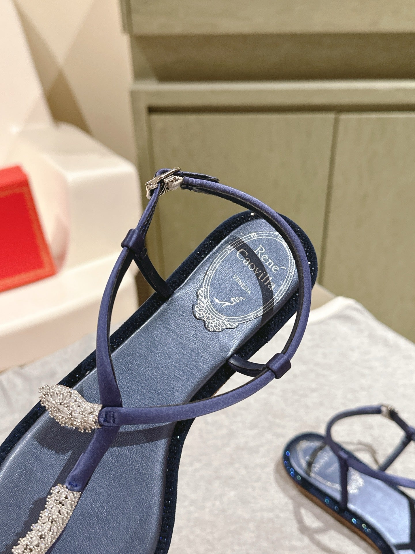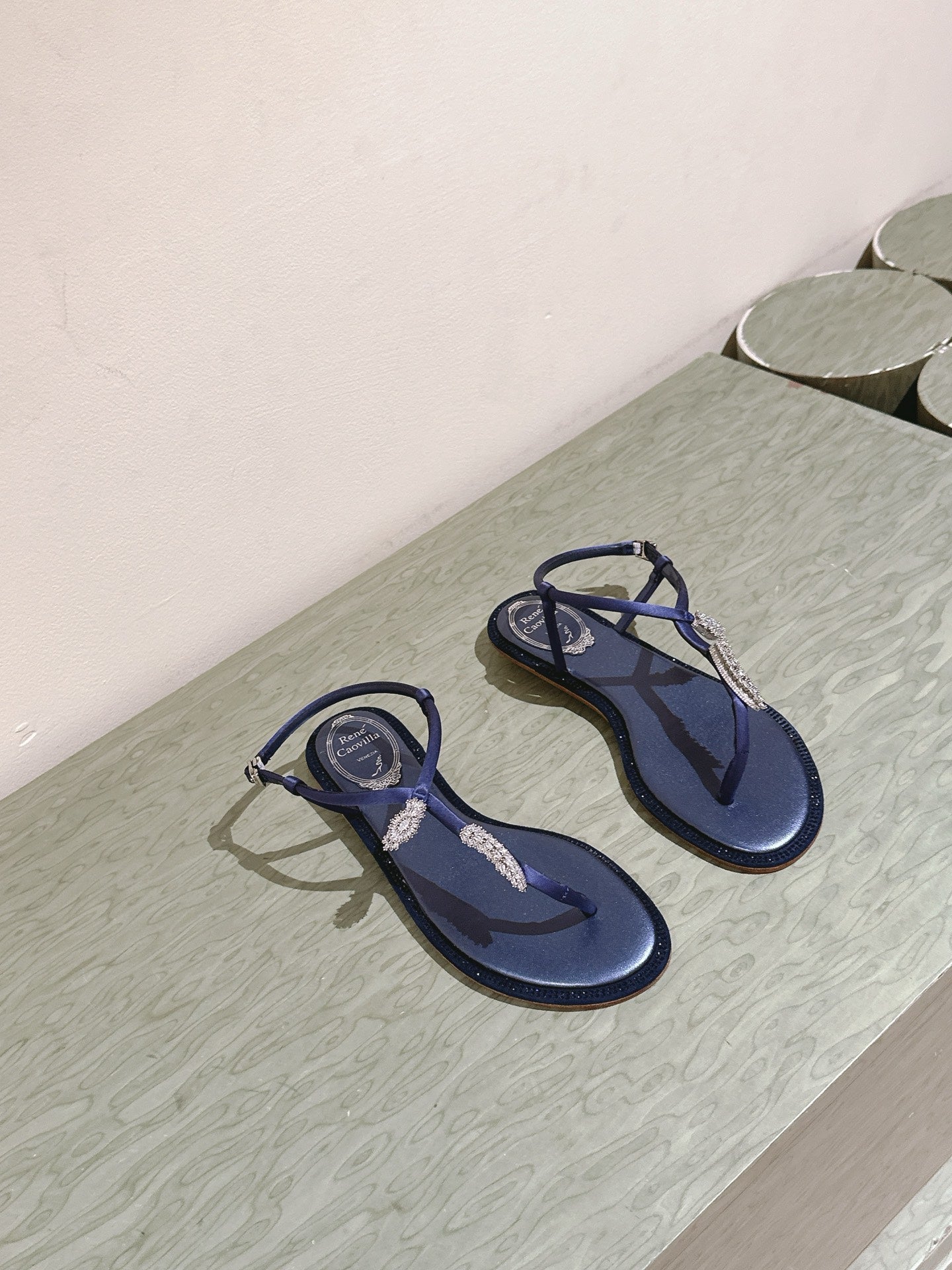 RC 25 Thong Flat Sole Black Silk Rhinestones 347189