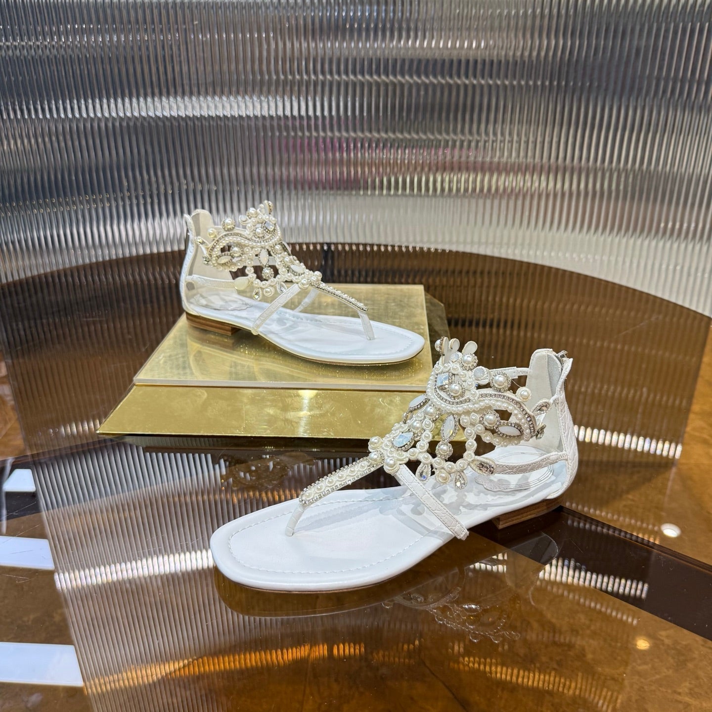 RC 25C Thong Diamond Sandals Pearl White Sheepskin Rhinestone 339504