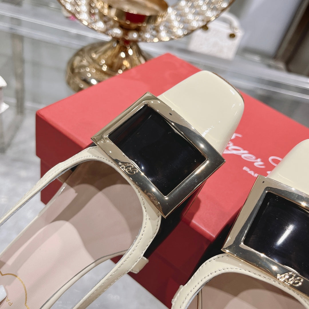 Belle Viv Metal Buckle Slingback Pumps 45 Transparent White Patent Leather