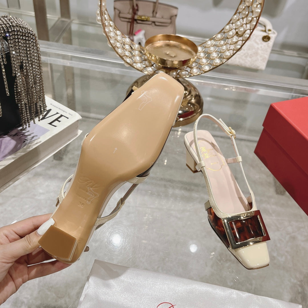 Belle Viv Metal Buckle Slingback Pumps 45 White Patent Leather