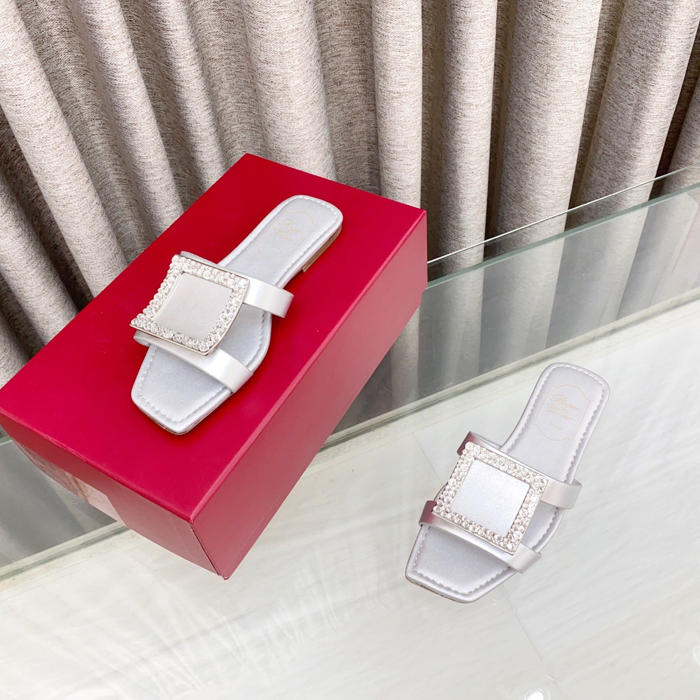 Viv 25 Diamond Flat Slippers Silver Cowhide 283037