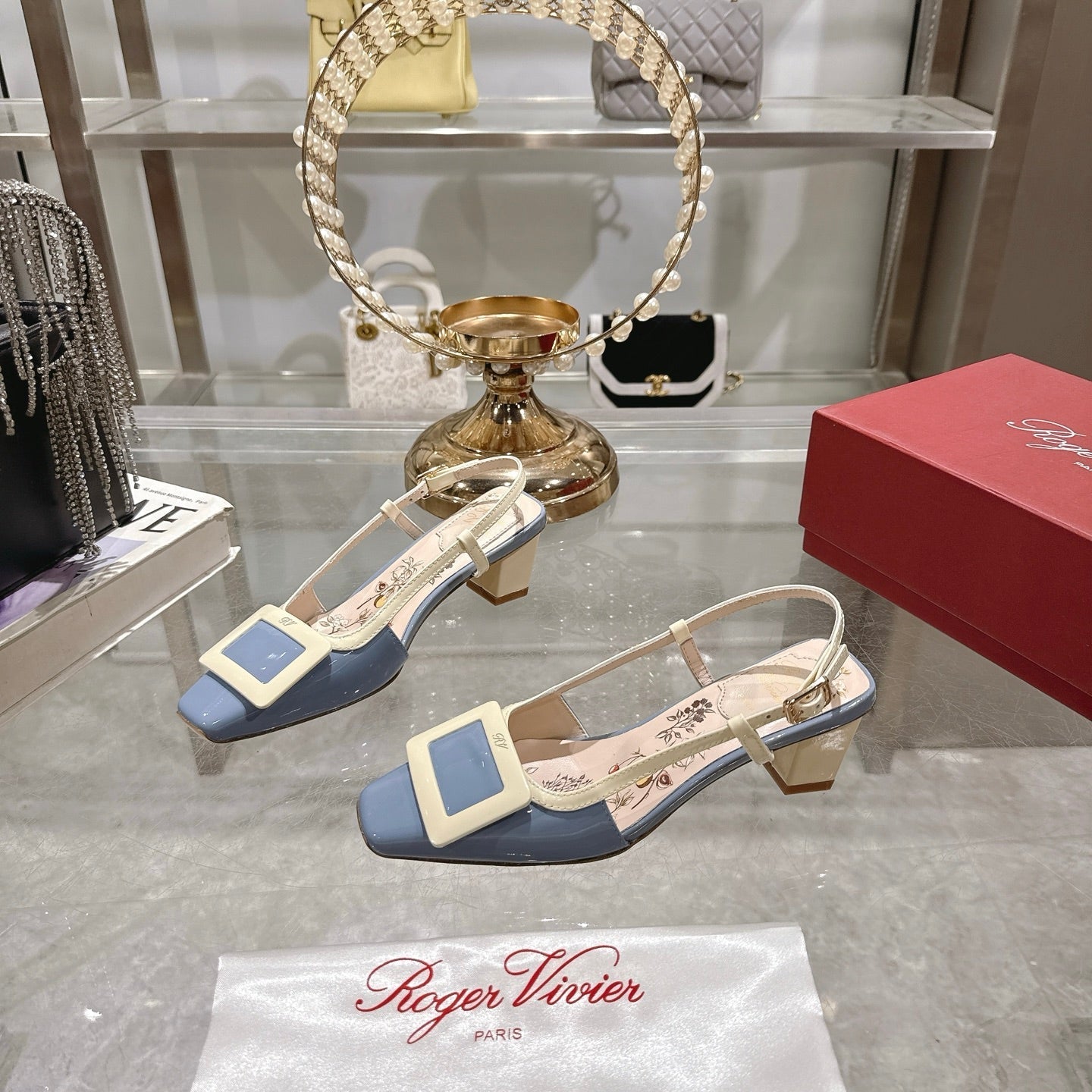 Viv 25 Flower Slingback Blue Italian Leather 300787