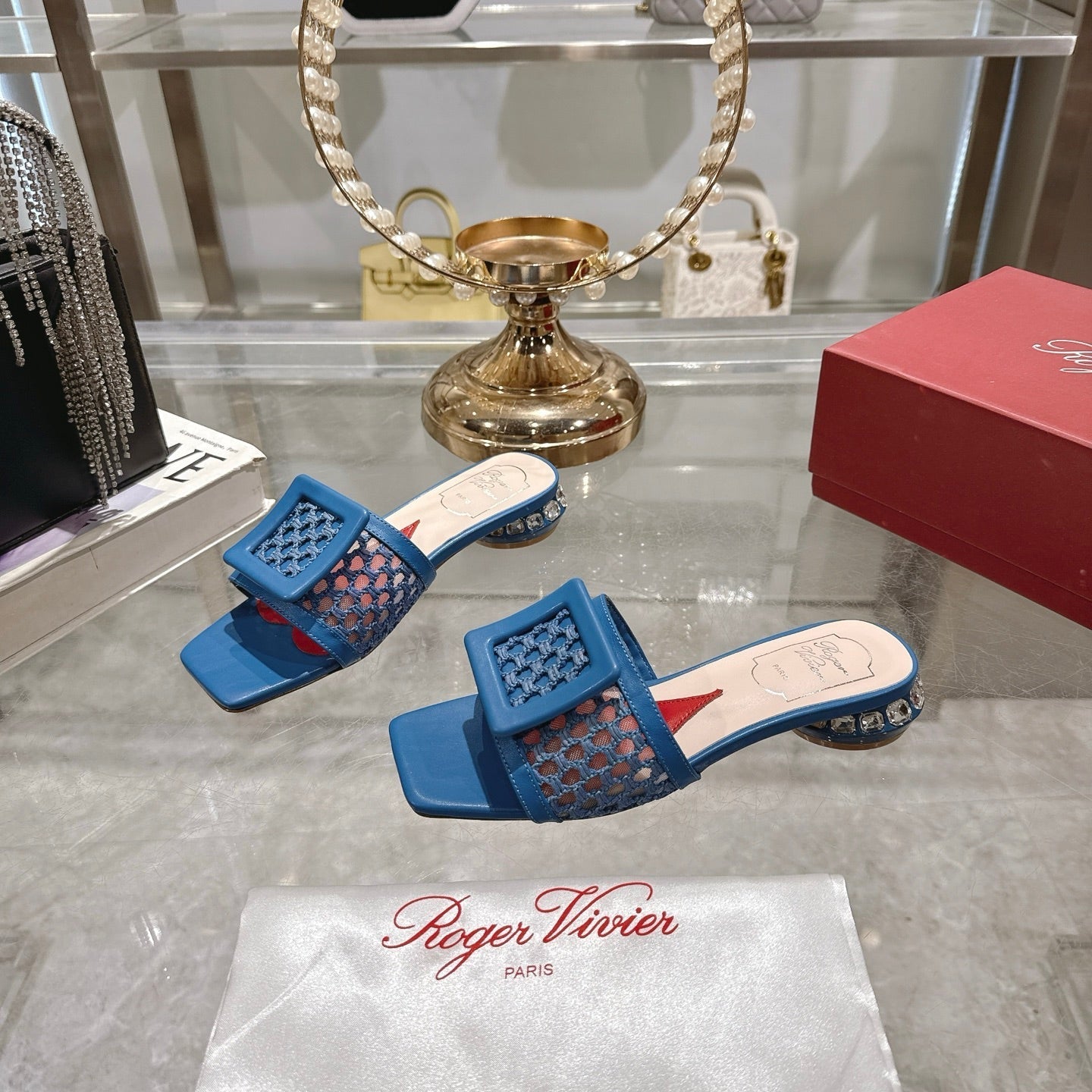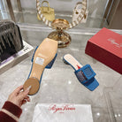 Viv 25 Hollow Square Buckle Slippers Blue Weaving Leather 263000