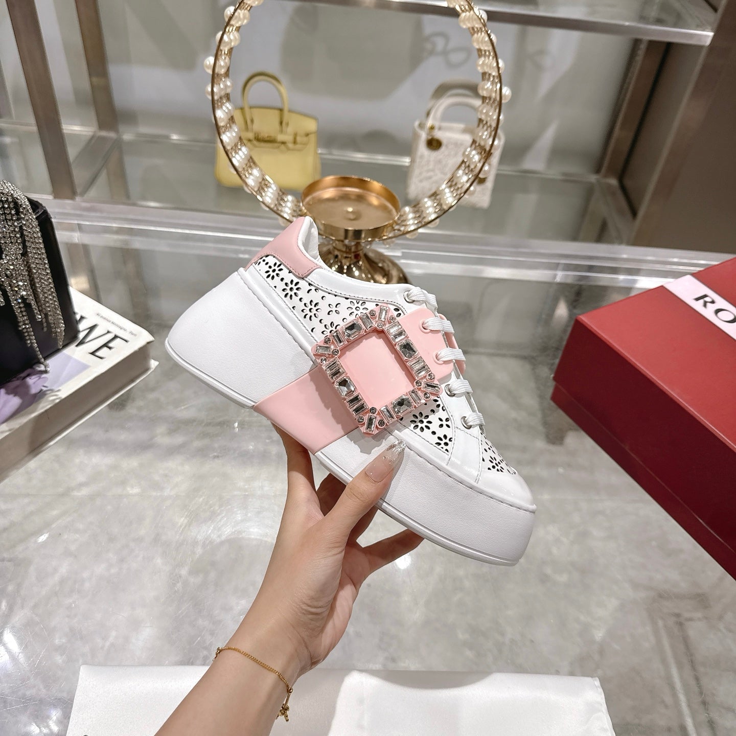 Viv 25 Square Buckle Platform White Pink Cowhide 262980