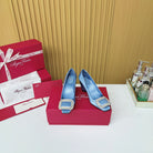 Viv Button Pumps Mist Blue Silk 247406