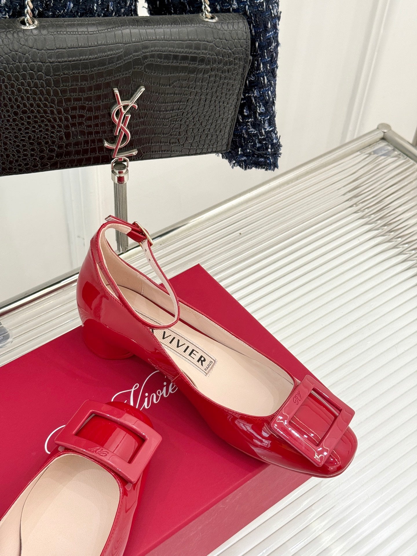 Viv Square Buckle Mary Jane Red Fetal Cowhide 286706