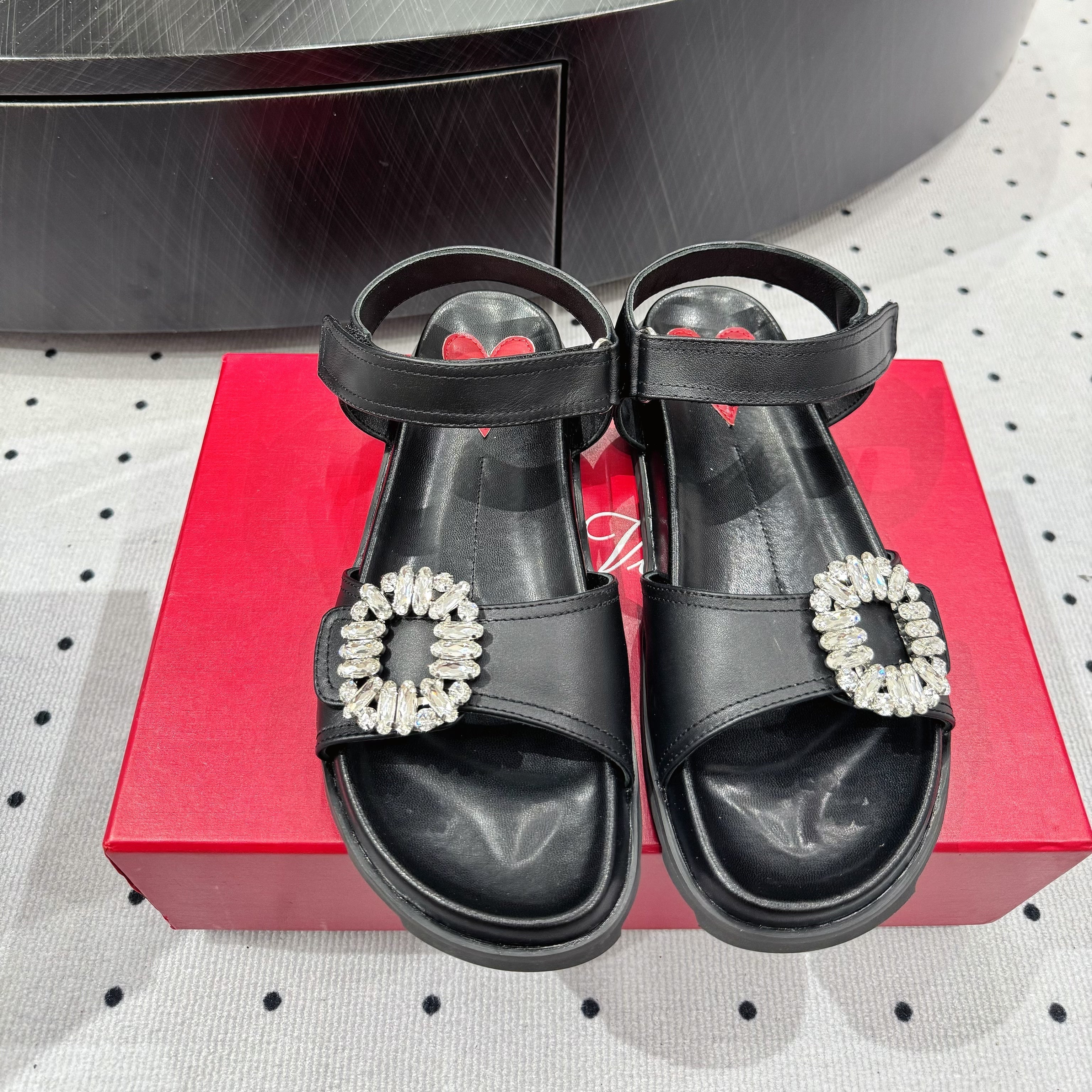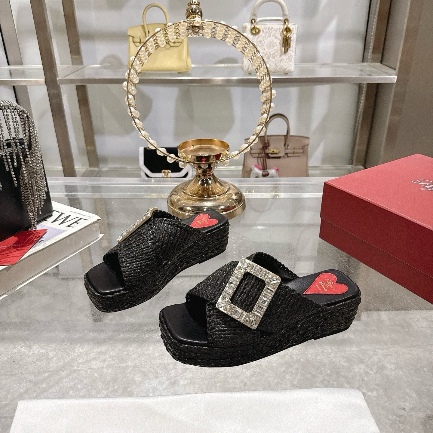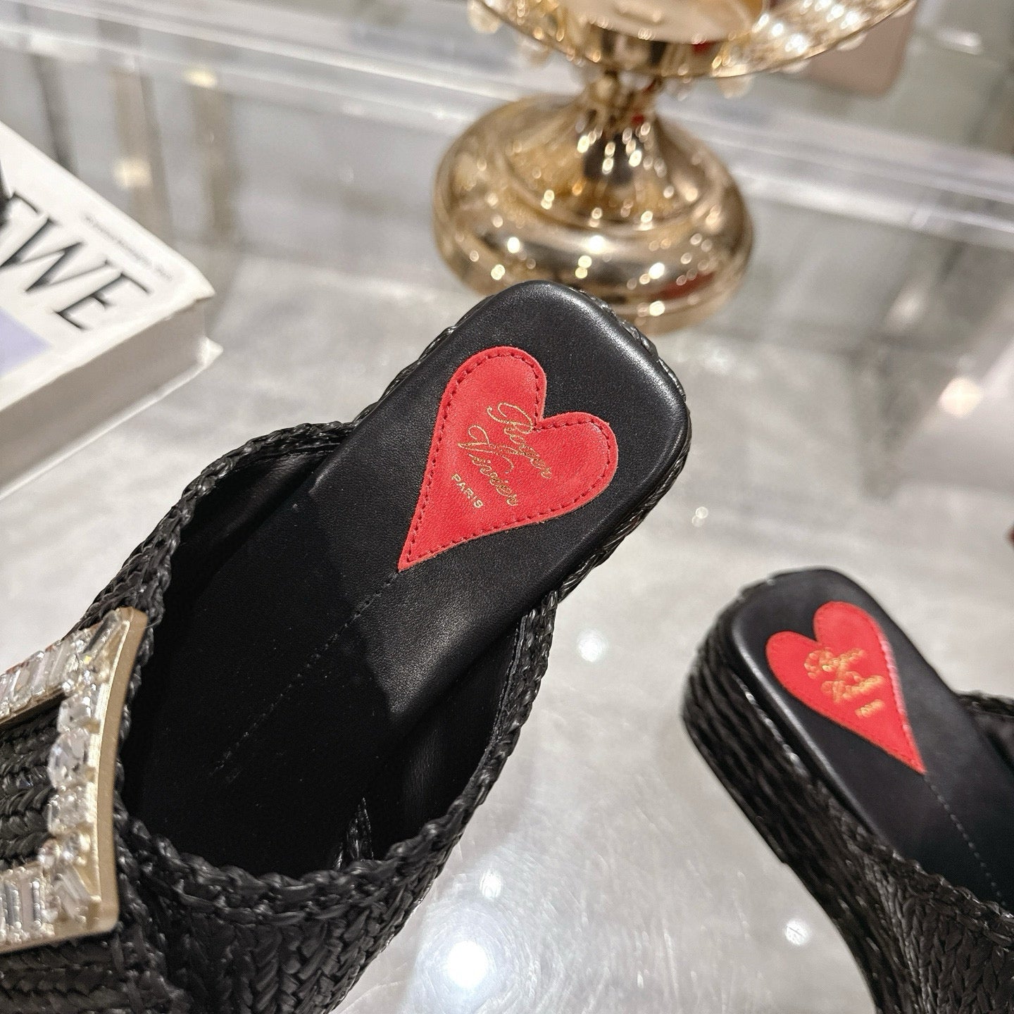 Viv 25 Diamond Flat Slippers Black Cowhide 283038