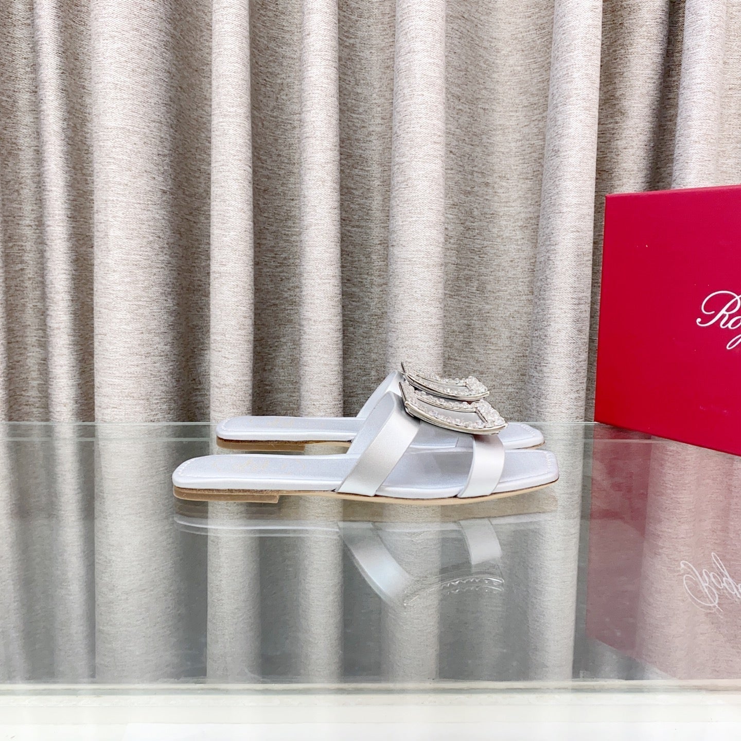 Viv 25 Diamond Flat Slippers White Cowhide 283036