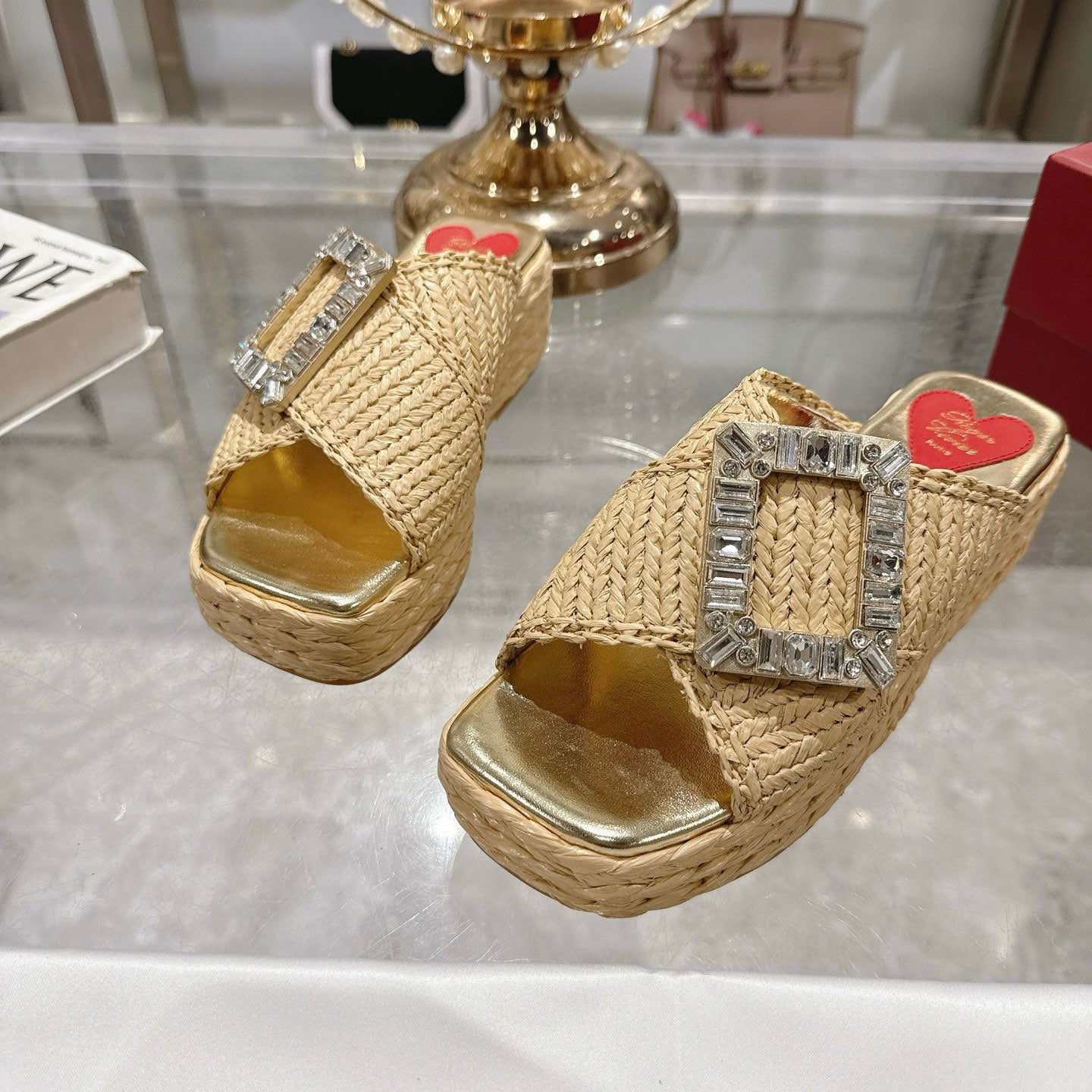 Viv 25 Diamond Flat Slippers Brown Cowhide 283035