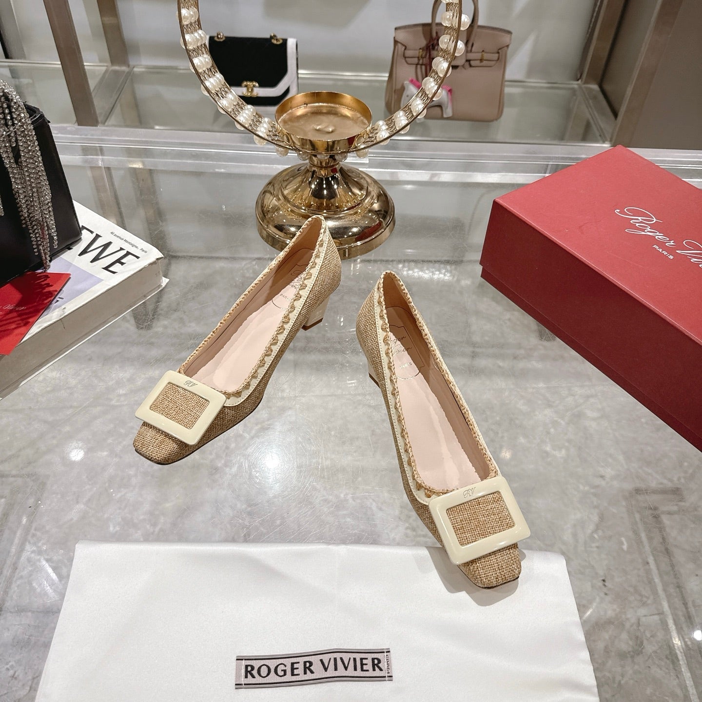 Viv Trompette Thick Heel Pumps White Cowhide Leather 283048
