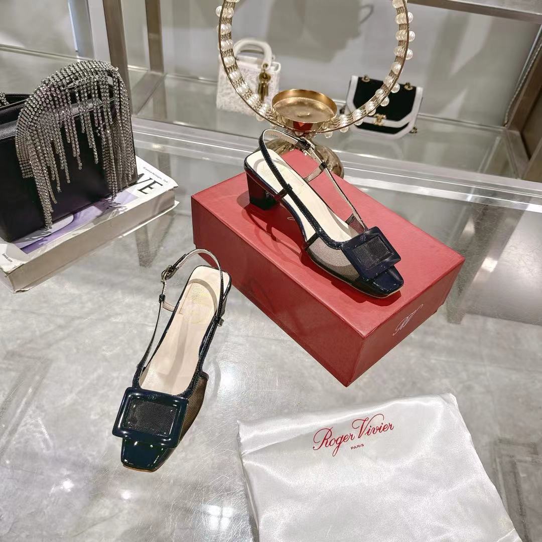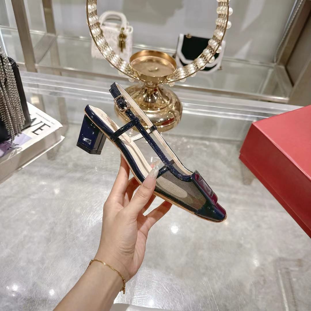 Viv 25 Slingback Black Mesh Italian Leather 300780