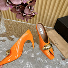 ALAIA AZZEDINE HIGH HEELS IN TANGERINE ORANGE CALFSKIN WITH GOLD HARDWARE