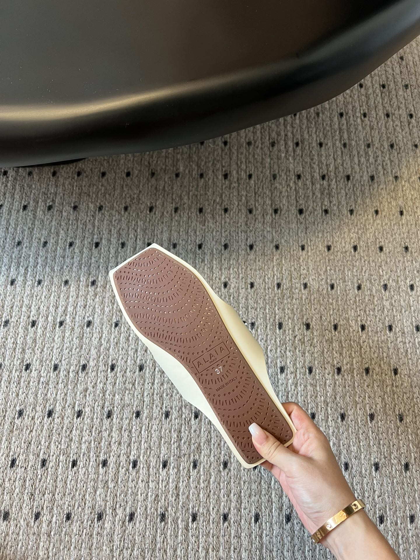 ALAIA FOLDED FLAT MULES WITH SPHERES ON WHITE CALFSKIN
