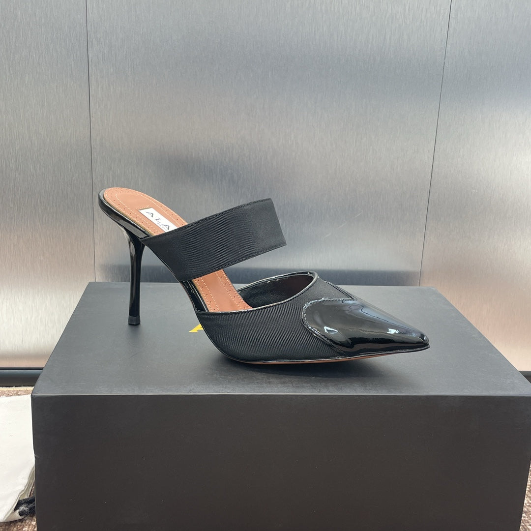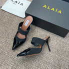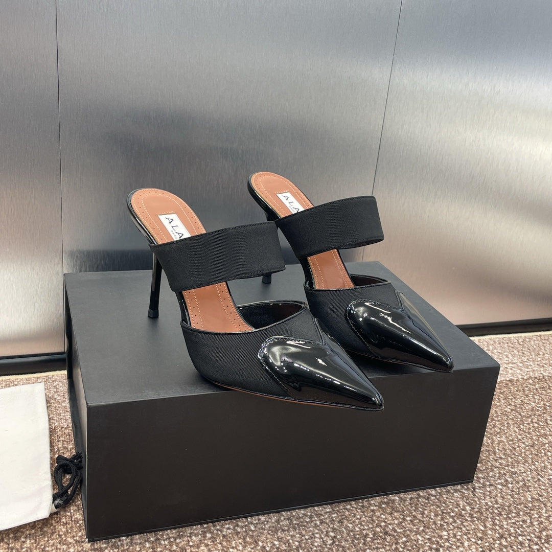 alaia mule 90 black grosgrain heart patent calfskin