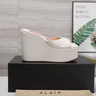 ALAIA PLATFORM WEDGE IN WHITE TAN LAMBSKIN WITH RED HEART