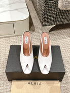 ALAIA SPIKE JEWEL MULES IN WHITE CALFSKIN