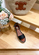 ROCKSTUD FLATFORM SANDAL IN BLACK CALFSKIN