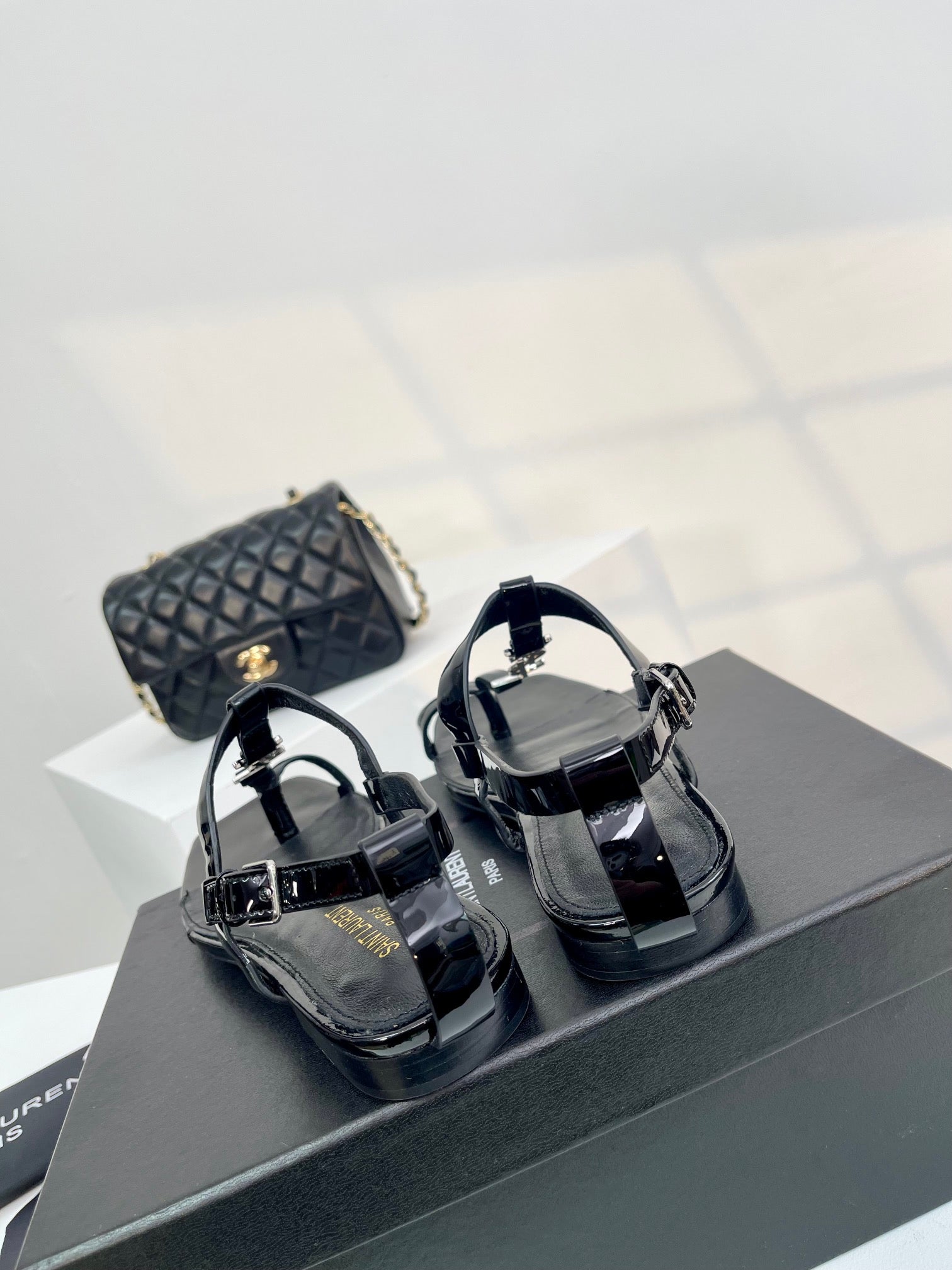 SL Cassandra Flat Sandals Black Patent Leather