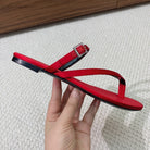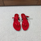 SL CRYSTAL BUCKLE THONG SANDAL RED SATIN