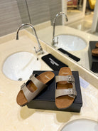 SL Flat Sandal Women Brown Seude Grey Calfskin