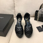 SL JODIE 135 PLATFORM SANDALS BLACK EMBOSSED CALFSKIN