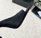 SL SEPT MULES BLACK SATIN AND RHINESTONES