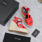 SL TRIBUTE WEDGE SANDALS CRIMSON CALFSKIN