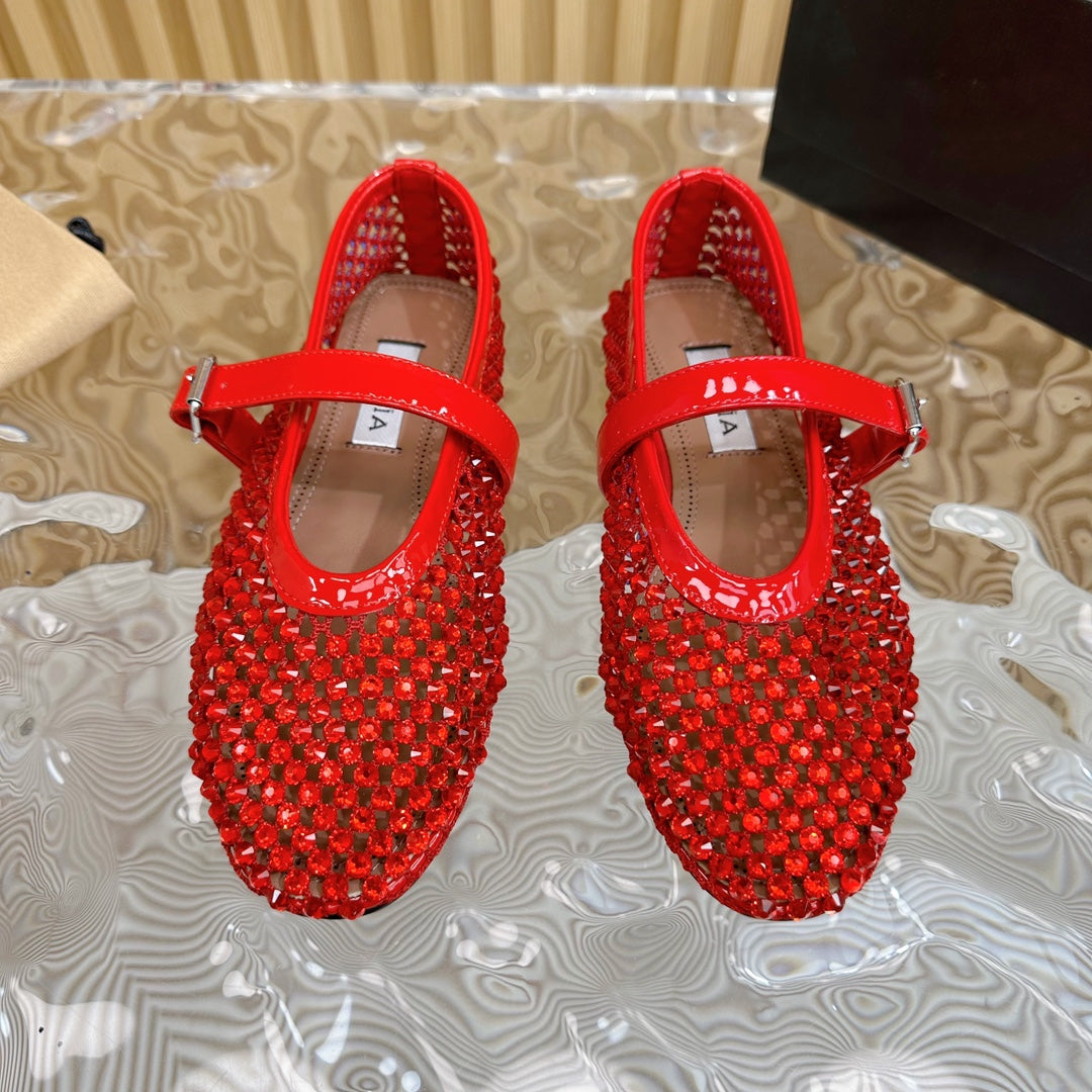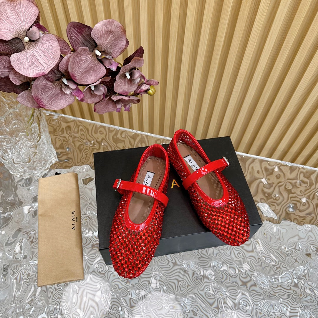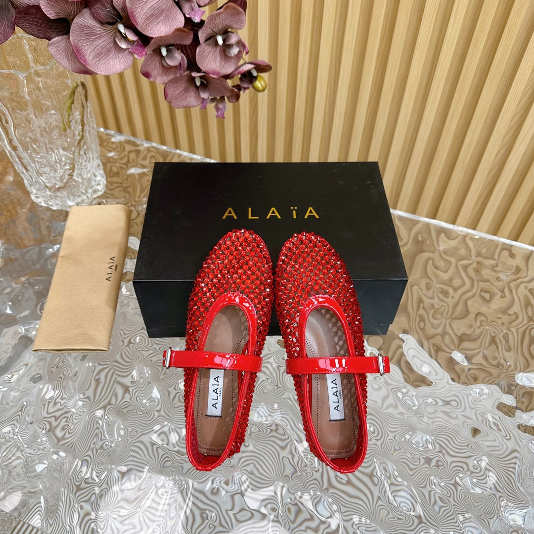 alaia ballet flat stud in fishnet red lambskin
