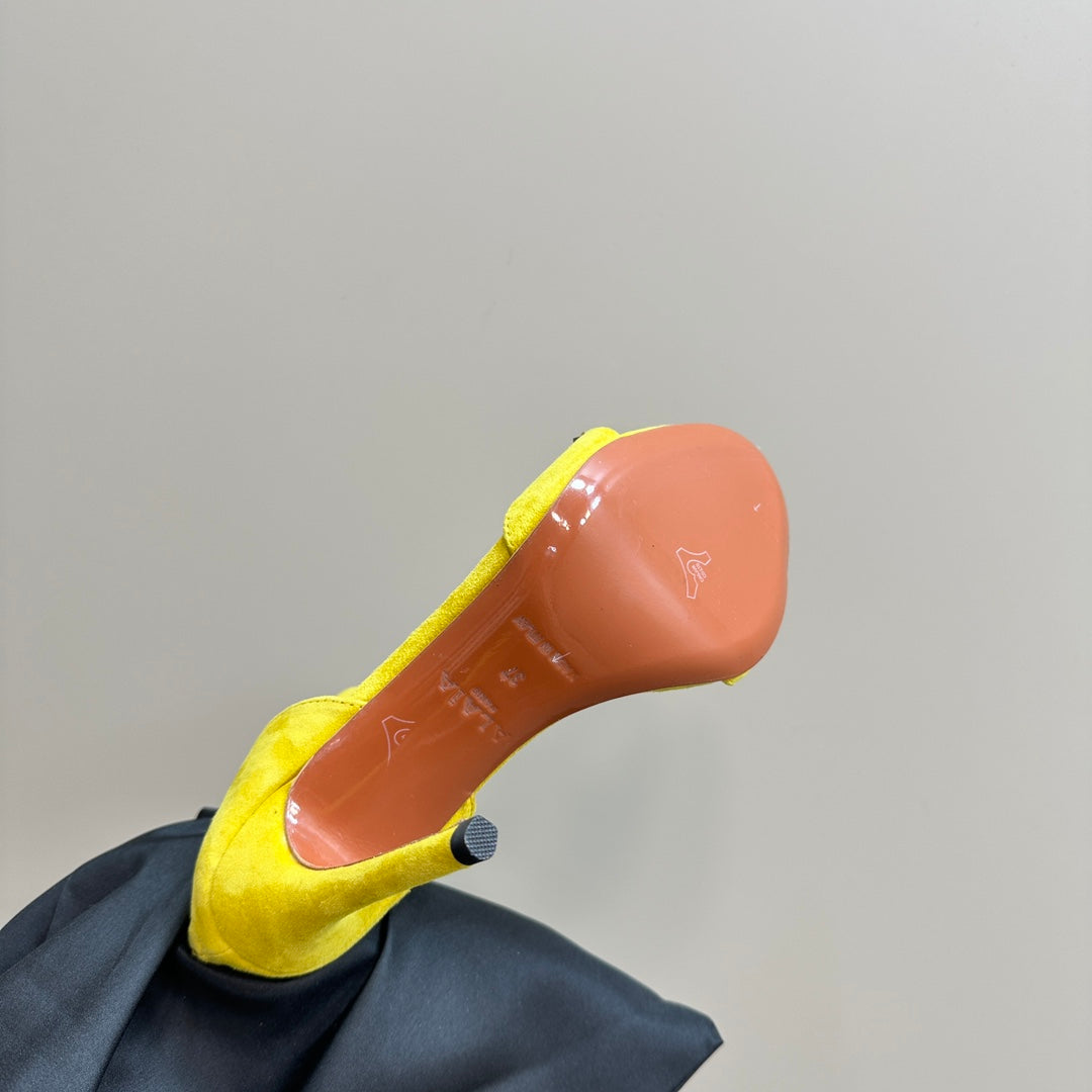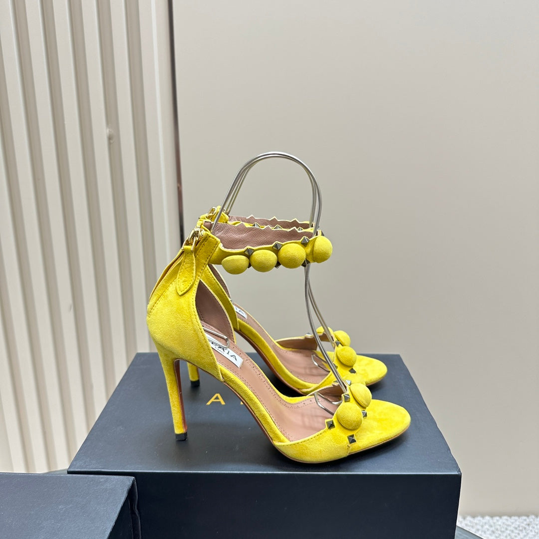 ALAIA HIGH HEEL SANDAL 10 CM IN BRIGHT YELLOW SUEDE