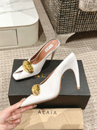 ALAIA SPIKE JEWEL MULES IN WHITE CALFSKIN WITH GOLD HARDWARE