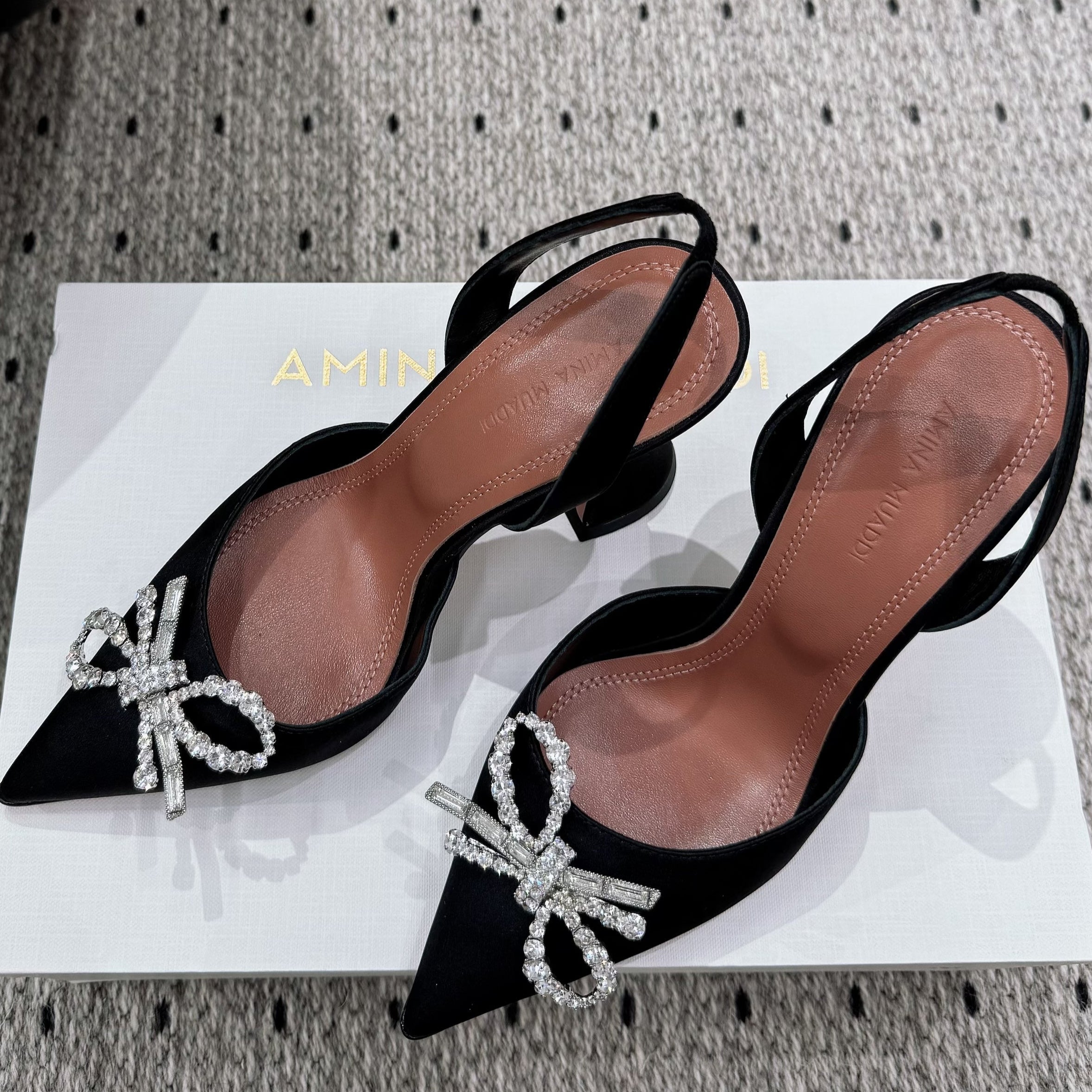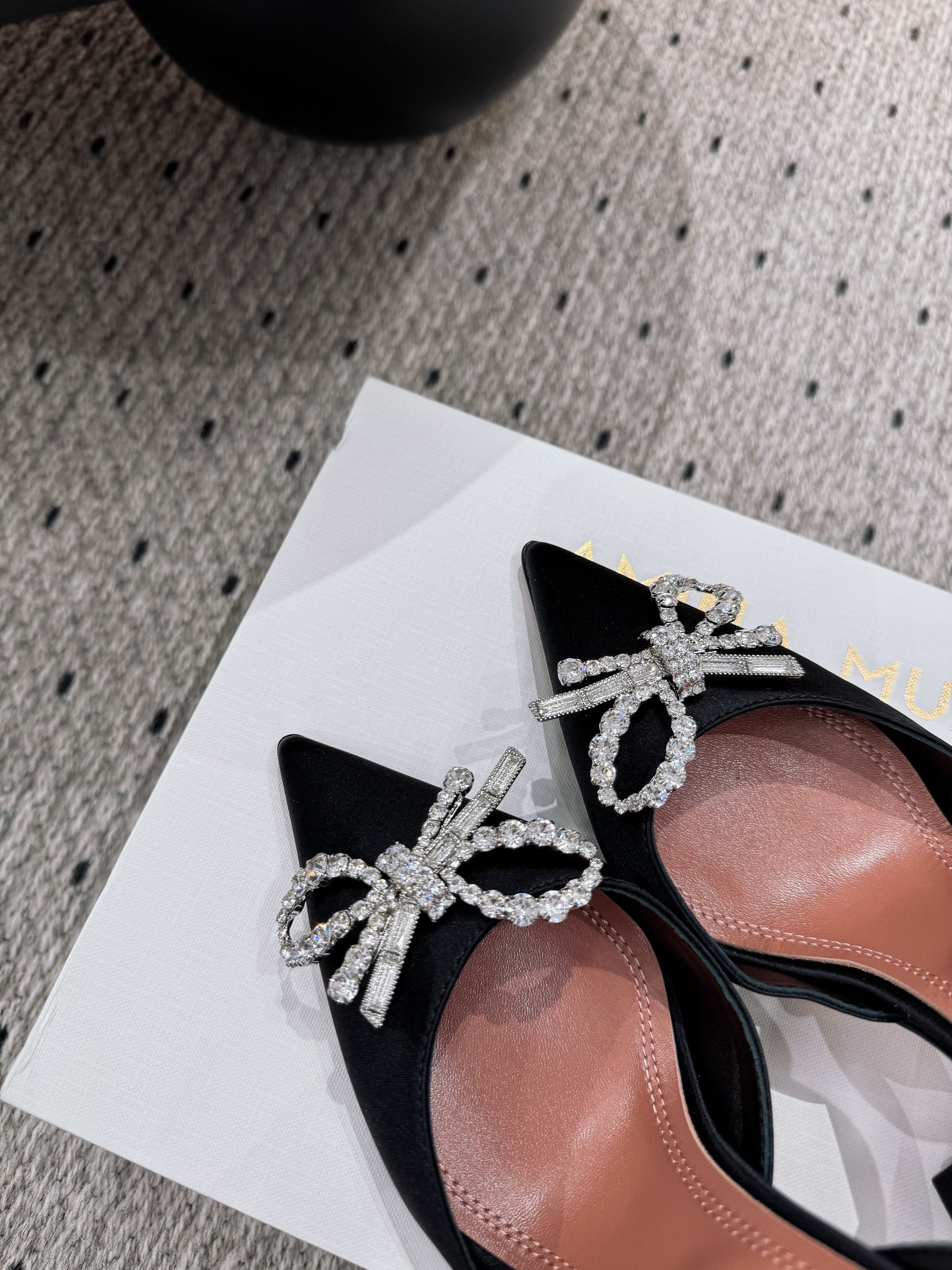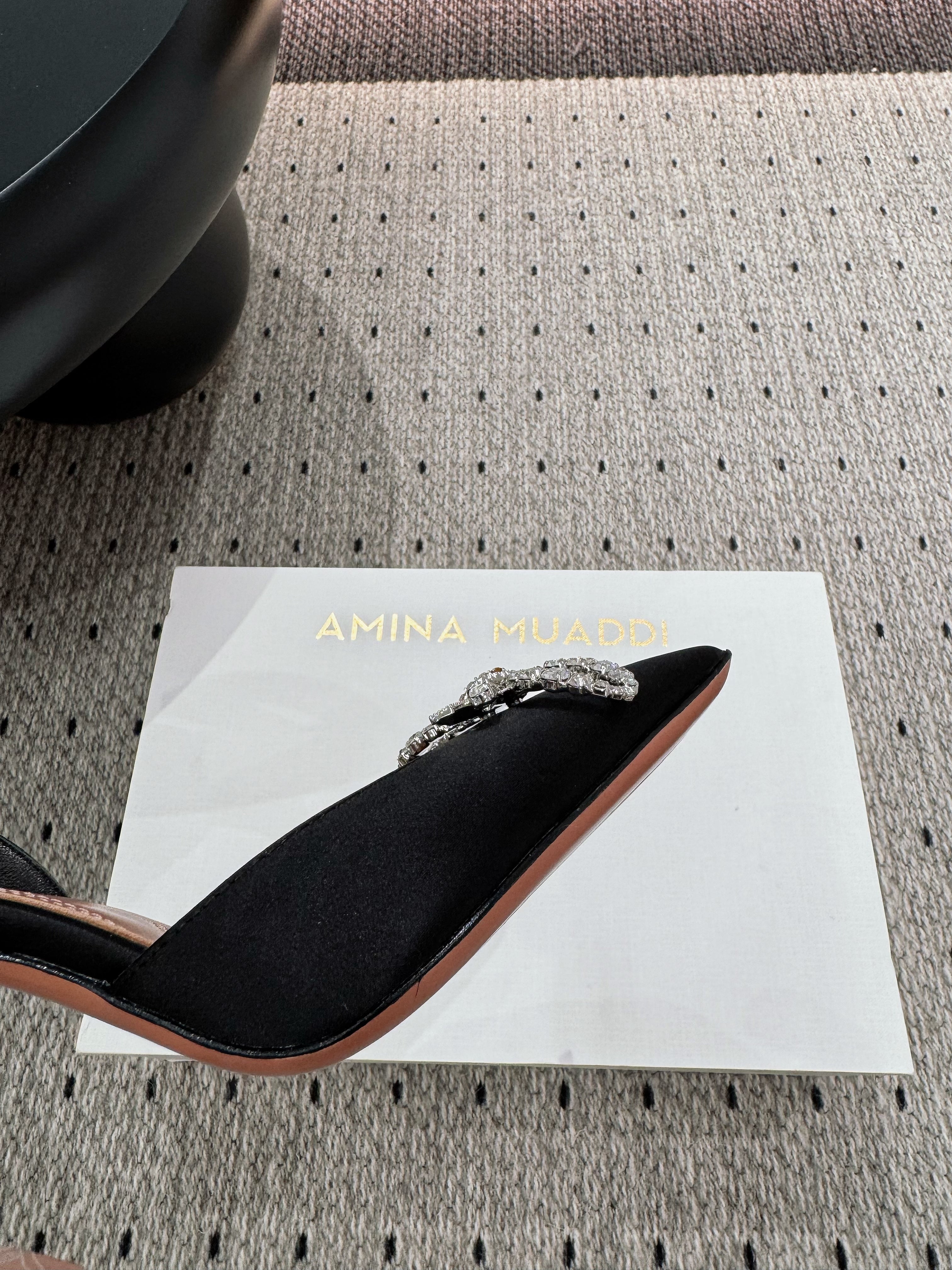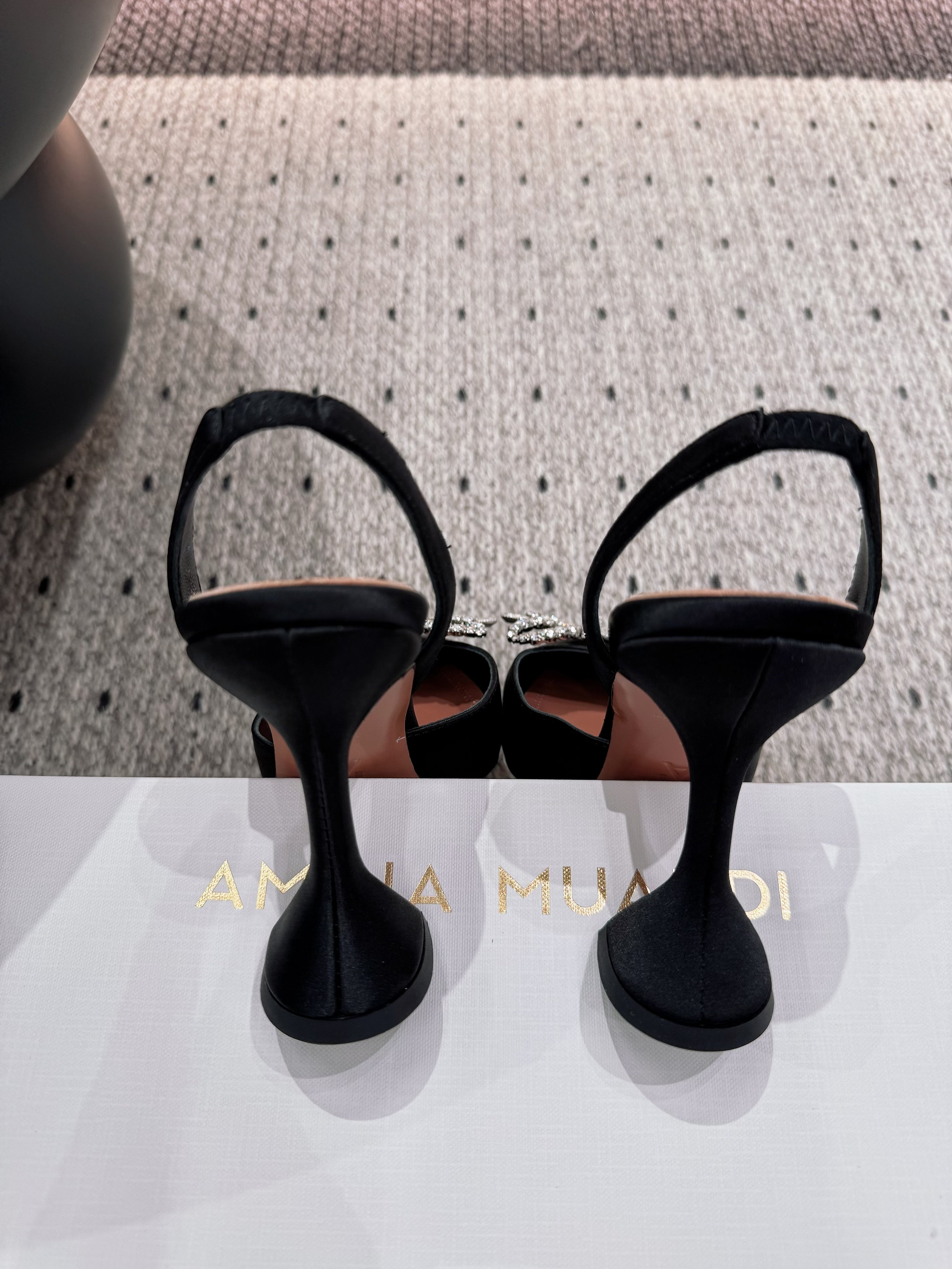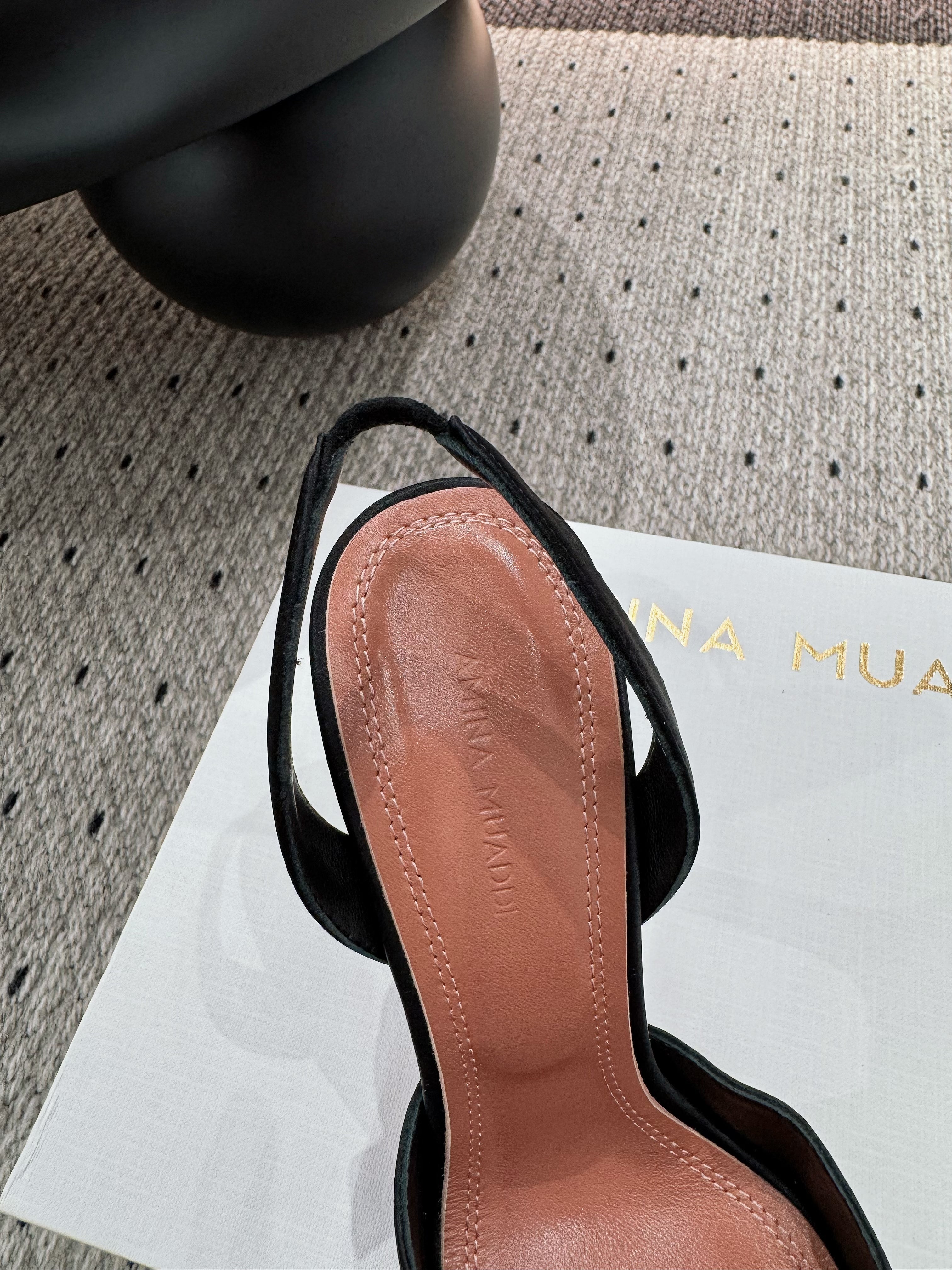 Amina & Muaddi 25 Slingback Black Silk Sheepskin