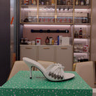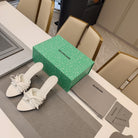 BOW-EMBELLISHED HIGH MULES IN WHITE SHEEPSKIN