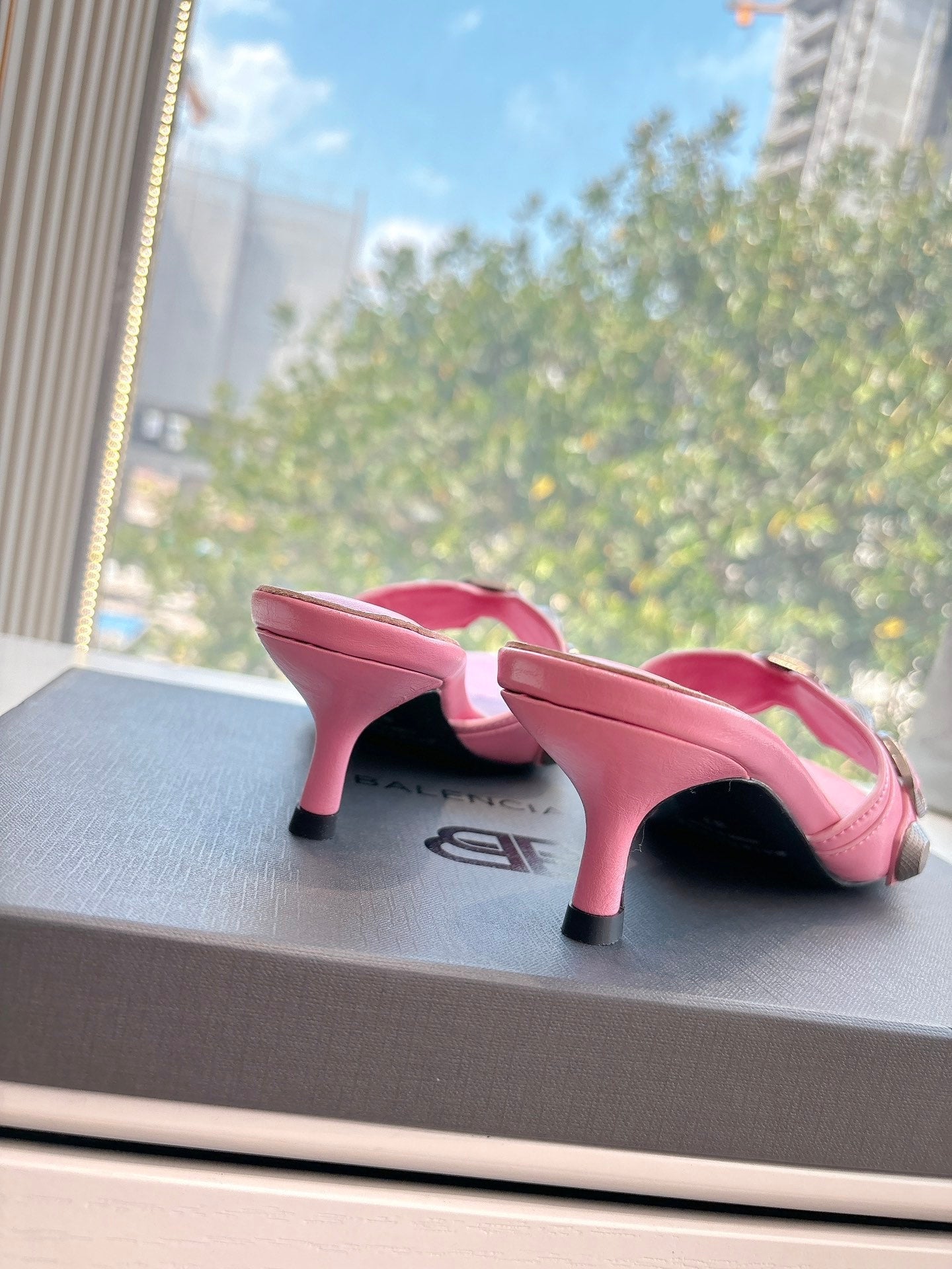 CAGOLE MID-HEEL MULES IN SHOCKING PINK CALFSKIN