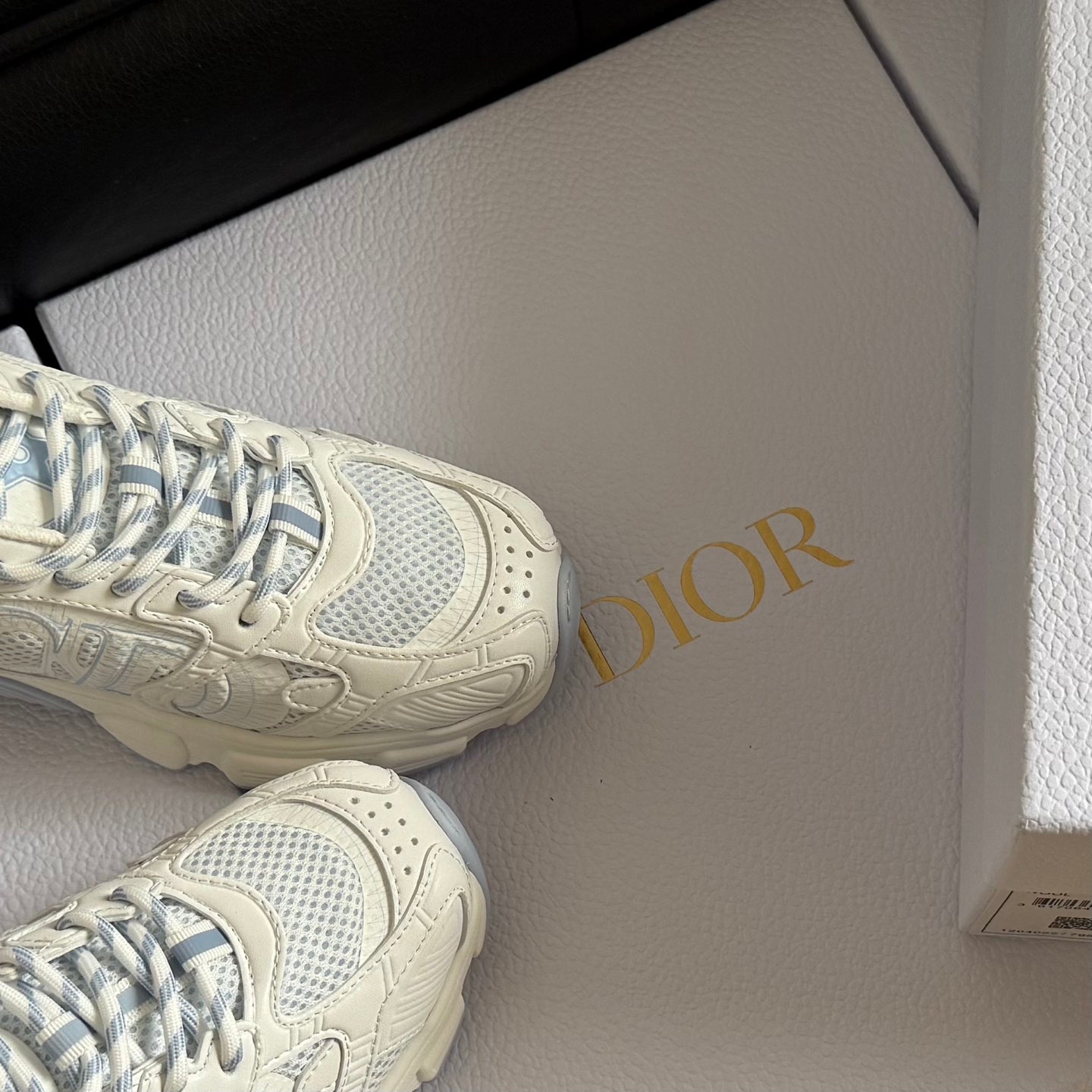 Dior 25 Chrono Sneakers Cream Blue Mesh Calfskin 531391