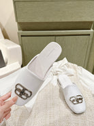 FLAT MULES IN WHITE SMOOTH CALFSKIN SILVER BUCKLE