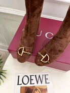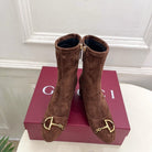 GG half-D chain buckle ankle boots brown suede 536055
