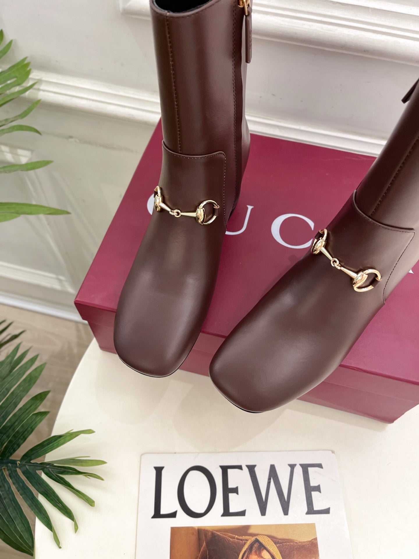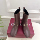 GG horsebit chunky heel ankle boots dark brown calfskin 536058