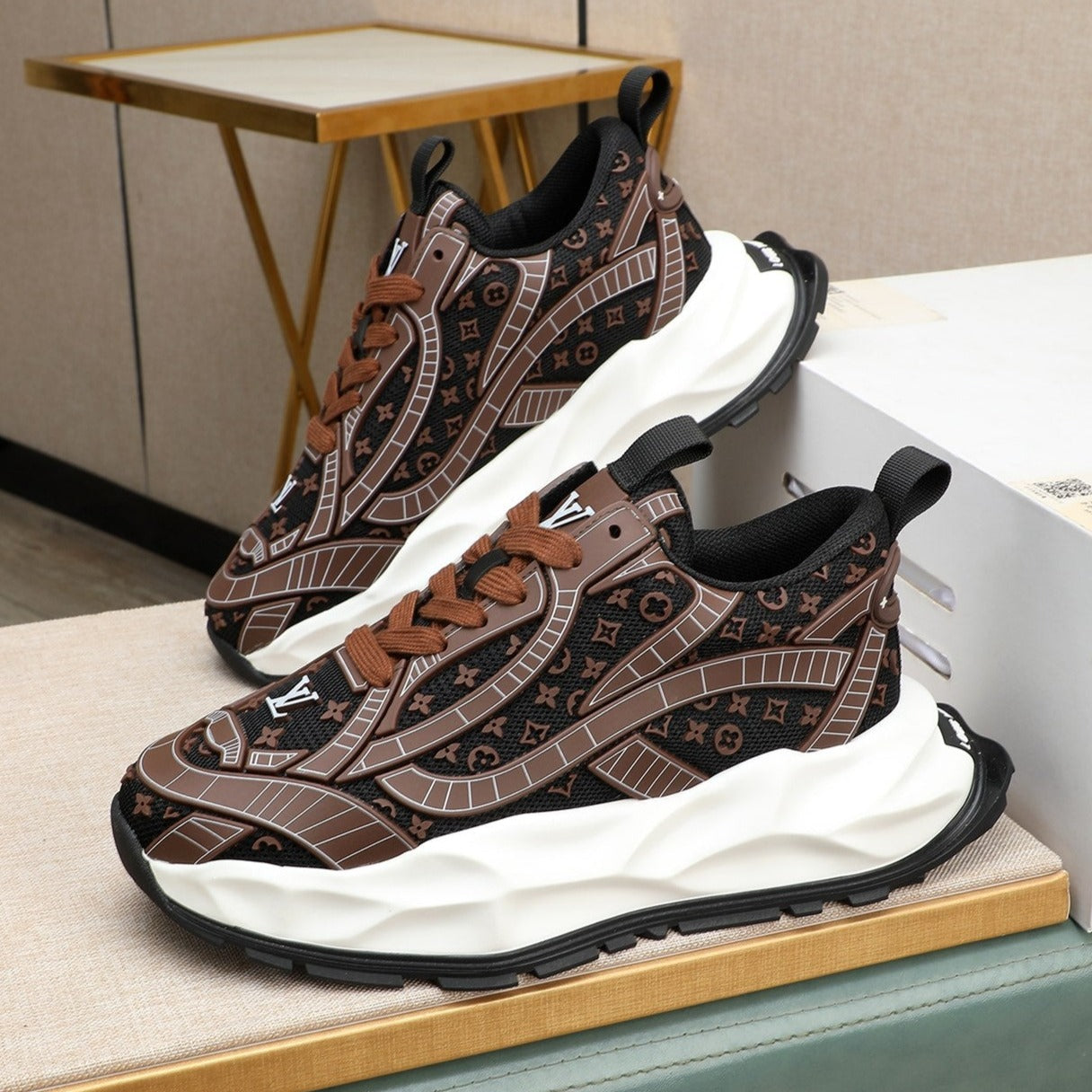 LV TRAINER IN CHOCOLATE BROWN CALFSKIN AND BREATHABLE MESH