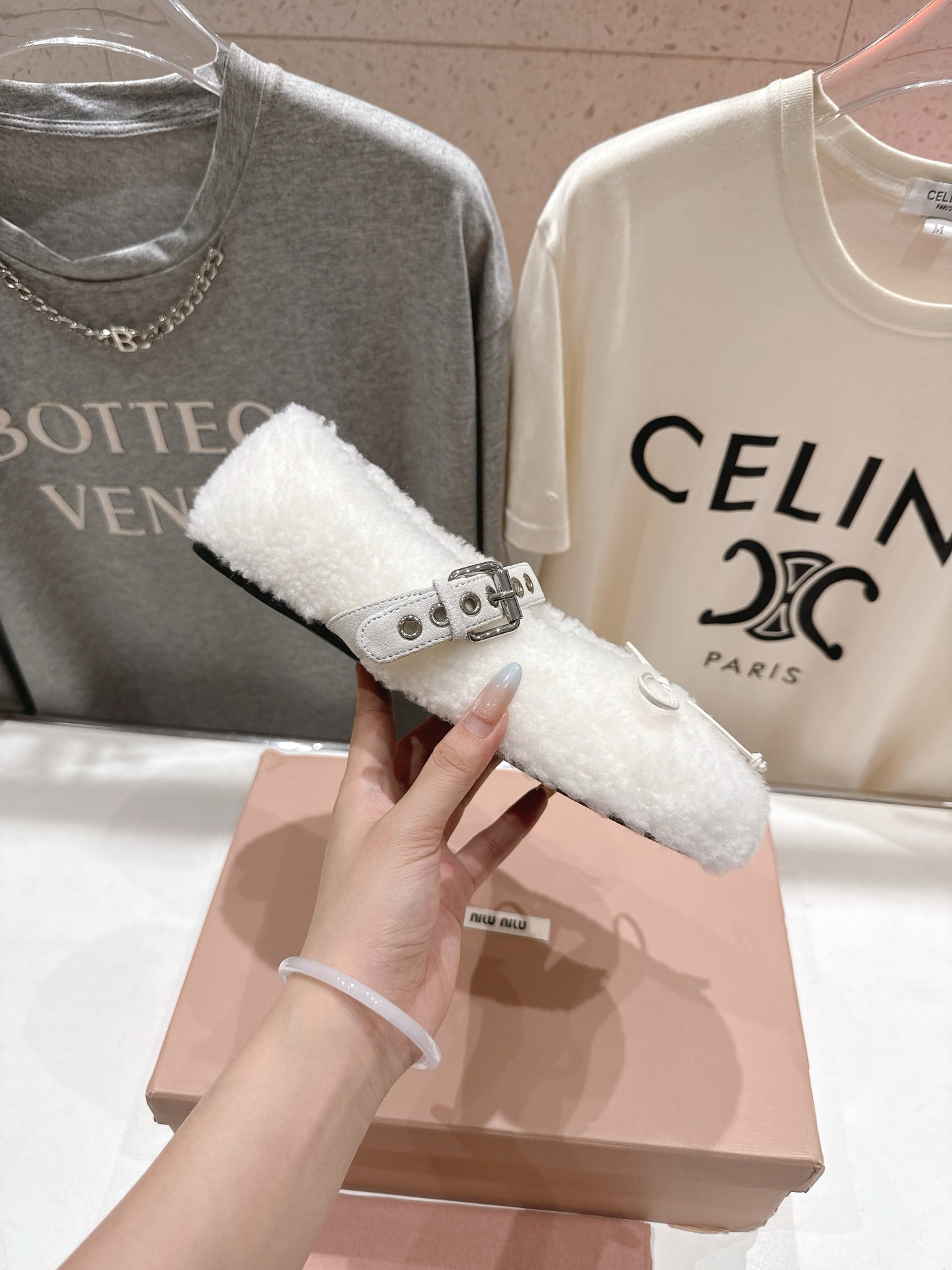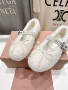 MiuMiu 25 Ballet Flat White Lambskin Wool 535591