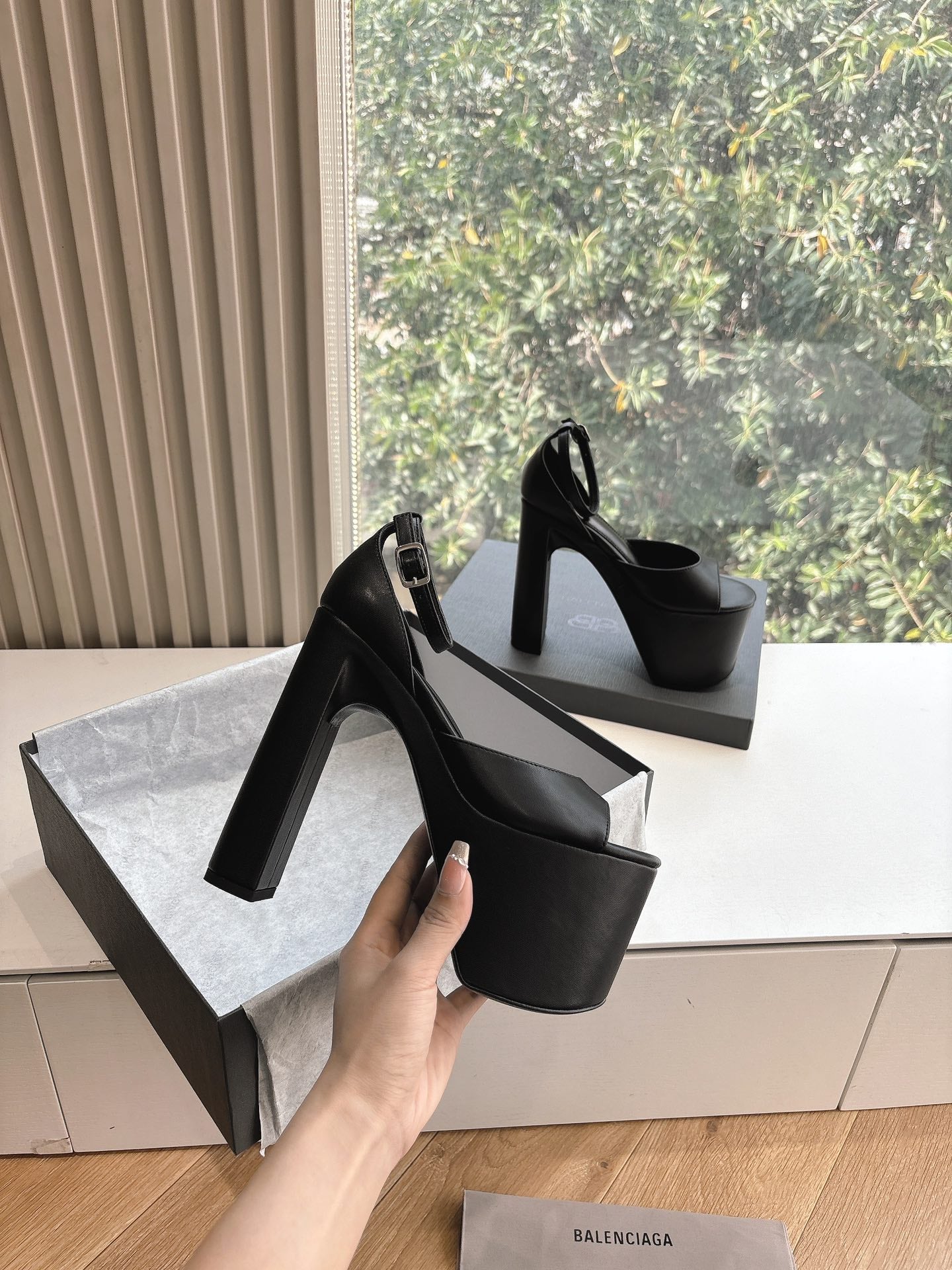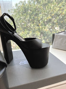 PLATFORM ANKLE STRAP HEELS IN BLACK SMOOTH CALFSKIN